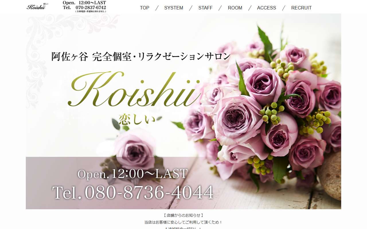 【システム料金】【セラピスト】【施術内容】【受付対応】【店内施設】【総評】リピートして常連だったけど。もう行かない。コイさんのセコさが分かった。塩対応された。忙しくて中々お店に行けなかった。3ヶ月くらい間が空いた。家からも1時間以上掛かるし。久しぶりにお店に行った。まず店長のコイさんが出て来た。まず、俺の顔を見るなり、初めてですか?と嫌な顔された。ソファーに通されるメニューを出されるが。いつも90