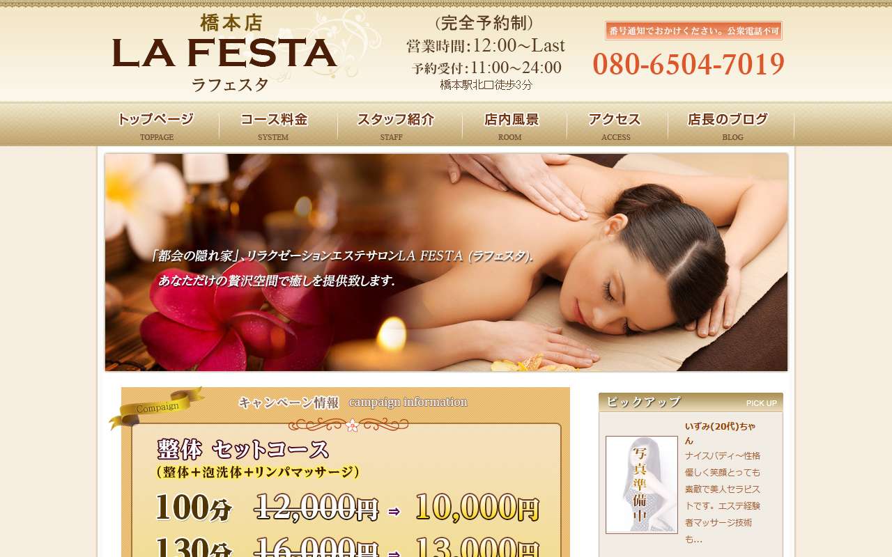 受付の声の感じも良かった。セラピストも若くて明るく、中の上くらい。店内とても清潔で、衛生面でも安心な店で良かった。この店、若くて可愛いいセラピスト揃い?値段もリーズナブル!!近隣の古いおばちゃんがいる店と違って、とても満足できたから、再来あり。